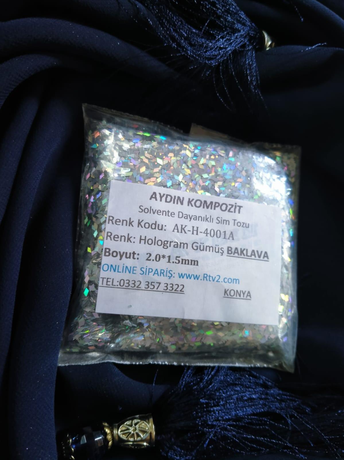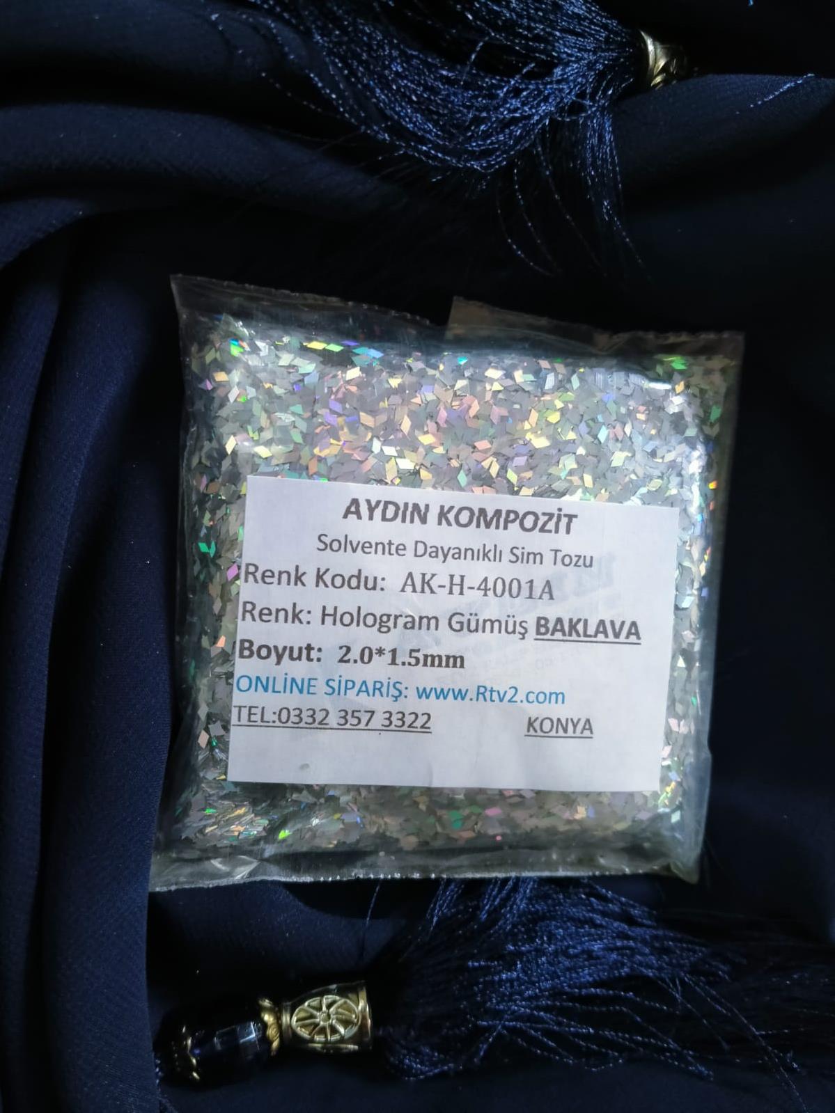 Sim Tozu Hologram Gümüş Lazer Baklava Sim 2.0*1.5mm